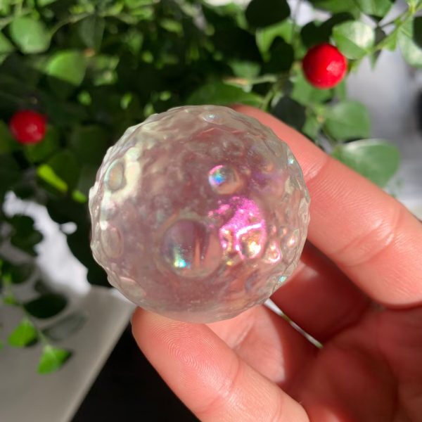 Aura Quartz Moon Sphere Titanium Aura Coated K9 Glass Full Moon Free Shipping