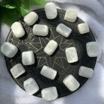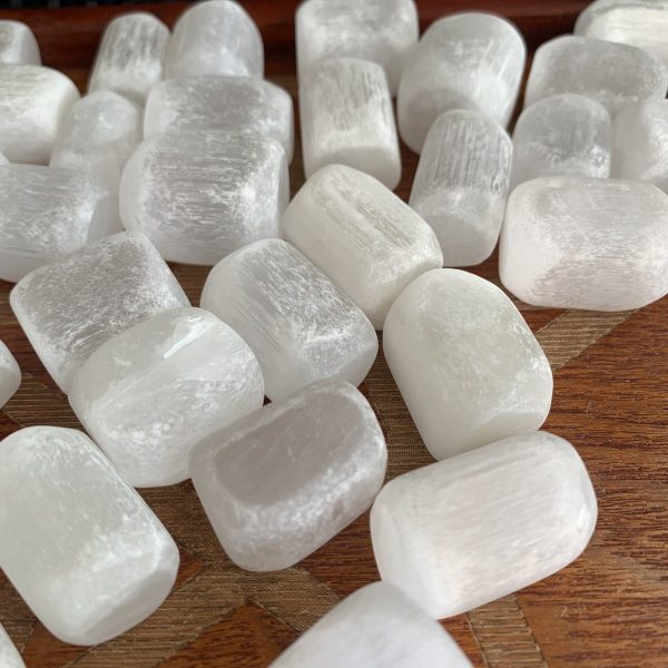 Selenite Polished Stone Tumbled Stone Size as pictures,different sizes. Before Packing,we will spray some oil to maintain their shine. The picture with white flowers is one kilogram,refer to the quantity. Select Randomly.